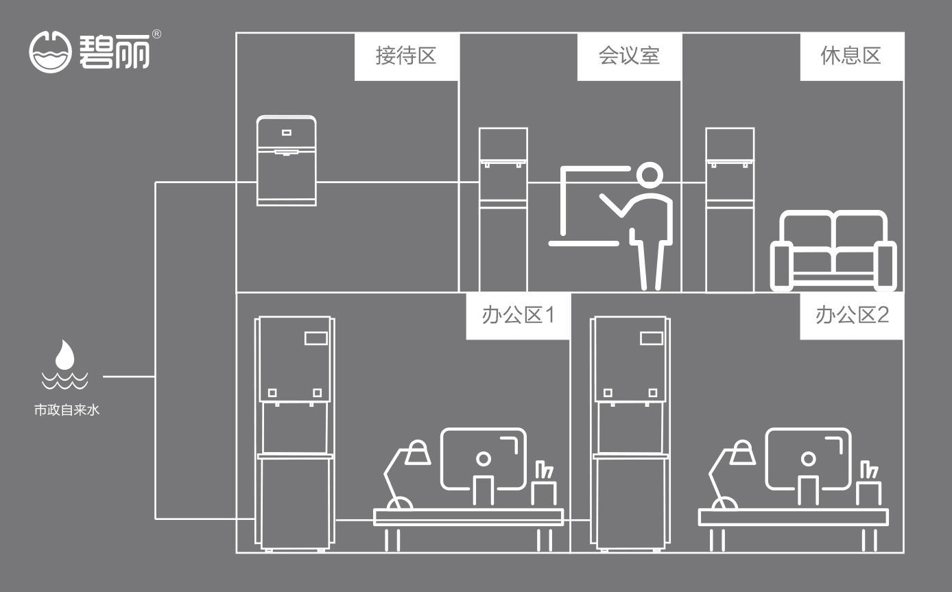 售后維護、更換濾芯方便,解決因場地限制無法滿足同時供應(yīng)多個飲水點的難題;